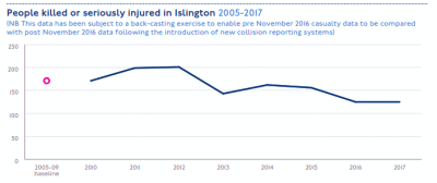 Fatalities and serious injuries from road collisions in Islington have reflected the national trend, as can be seen in the table below.