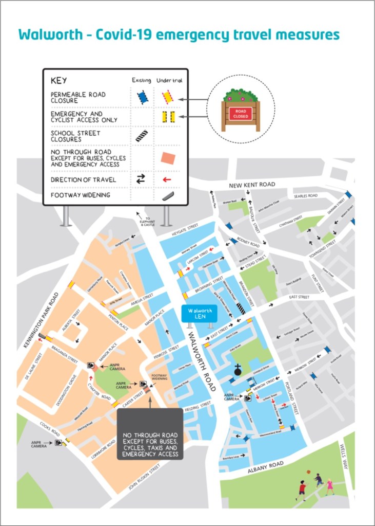 So…what more is needed? Following the initial lockdown, Southwark Council moved quickly to identify the area as a candidate to prioritise walking and cyclling and has created Healthy Neighbourhoods to the east and west of the Walworth Road.